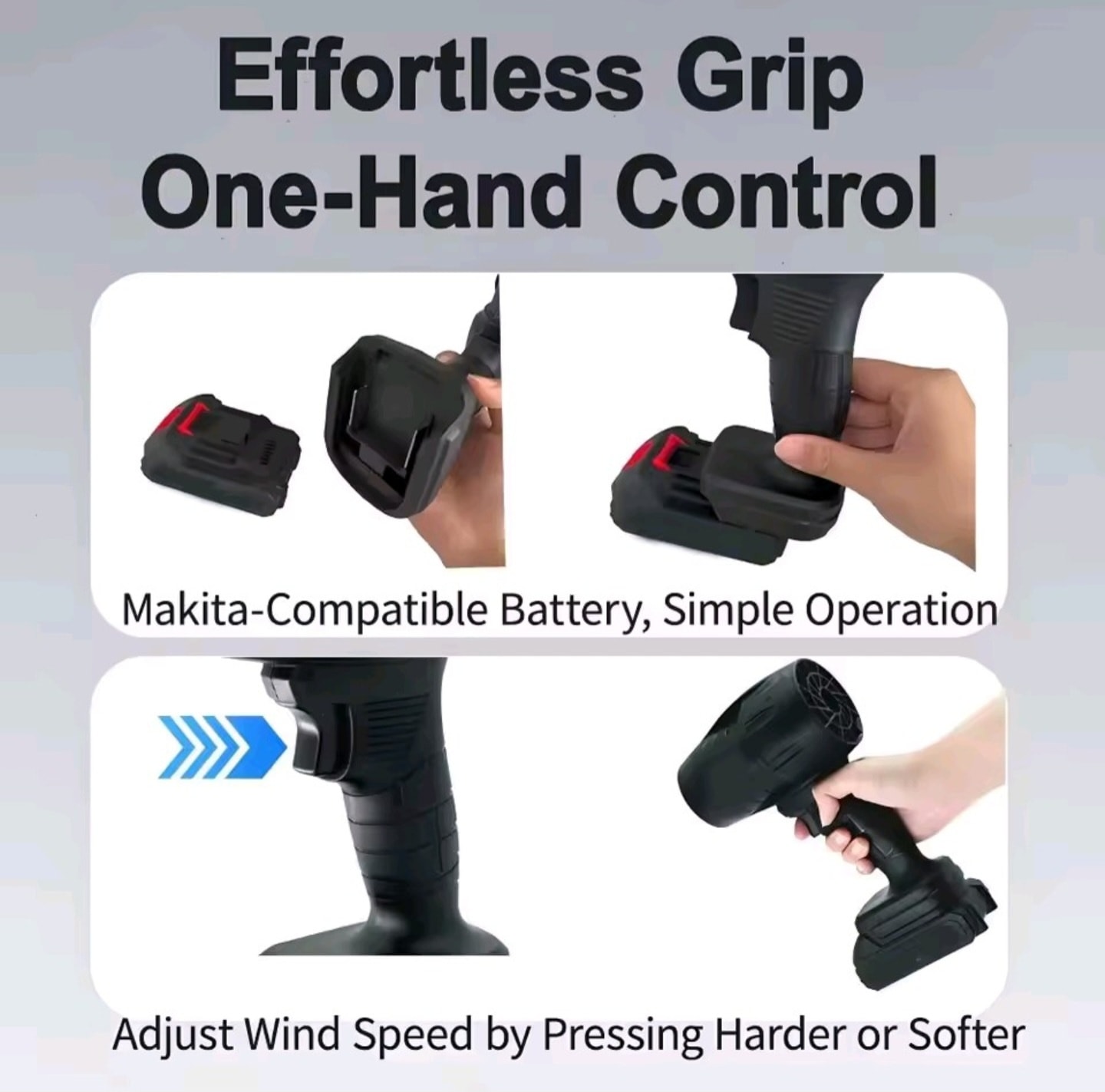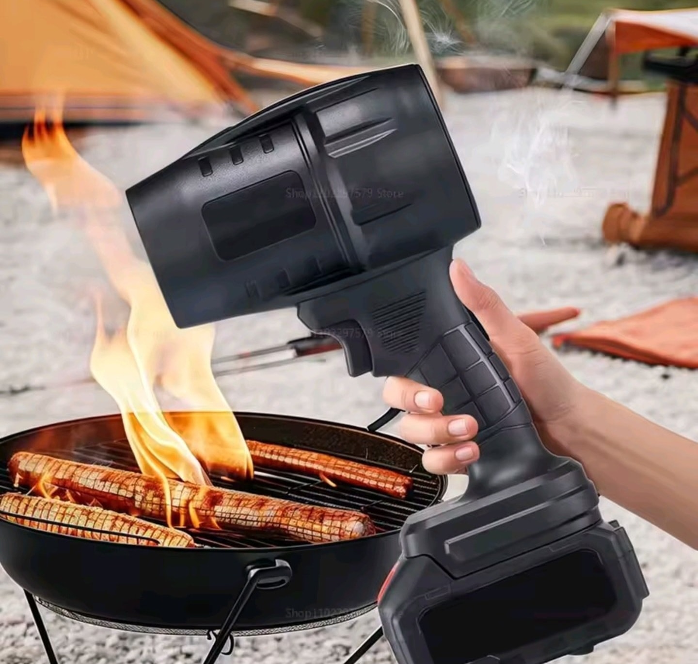 - Usos Versátiles: Además de las aplicaciones mostradas (eliminación de aserrín y encendido de carbón), se utiliza comúnmente para limpiar teclados de computadoras, secar automóviles, quitar polvo de rincones, y soplar hojas o nieve ligera.