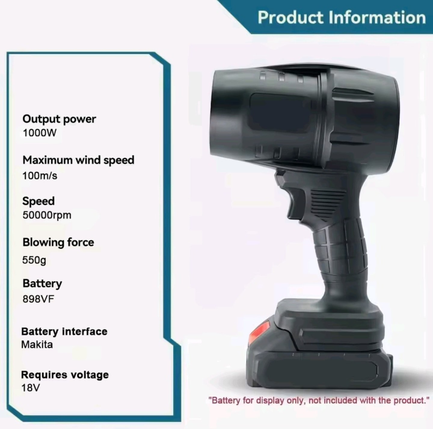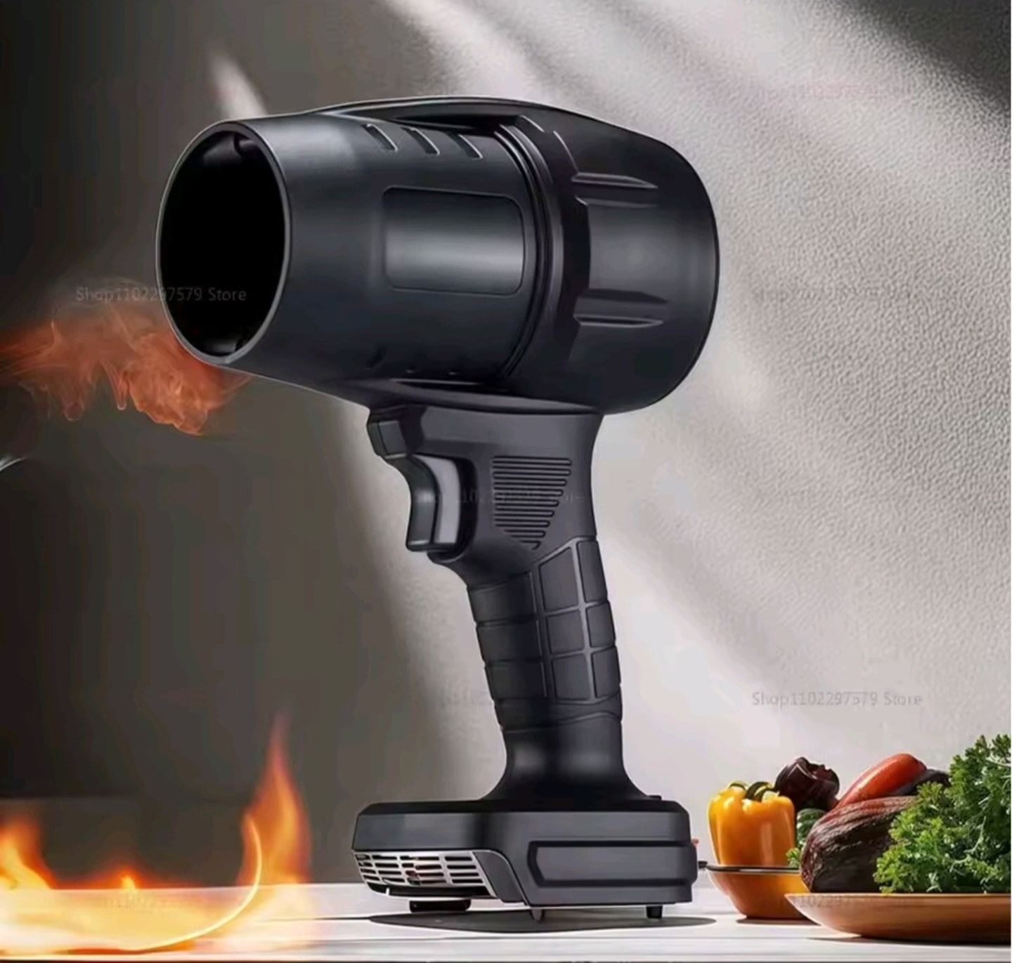Mini soplador turbo inalámbrico de alta velocidad, una herramienta portátil multiusos diseñada para tareas como la eliminación de aserrín y el encendido de carbón. Funciona con una batería recargable (no incluida con el producto, como se indica en la imagen).